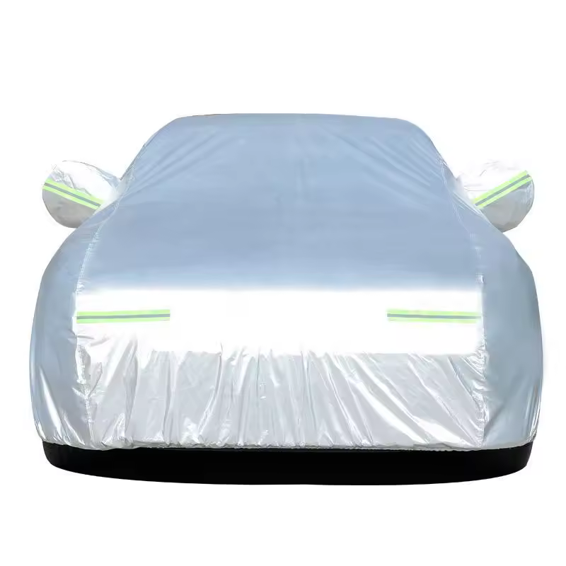 Protect your vehicle from sun, dust, and weather with this all-black full exterior car cover. Designed with reflective strips for nighttime visibility, it offers a snug fit for hatchbacks, sedans, and SUVs. A reliable shield against daily environmental damage.
